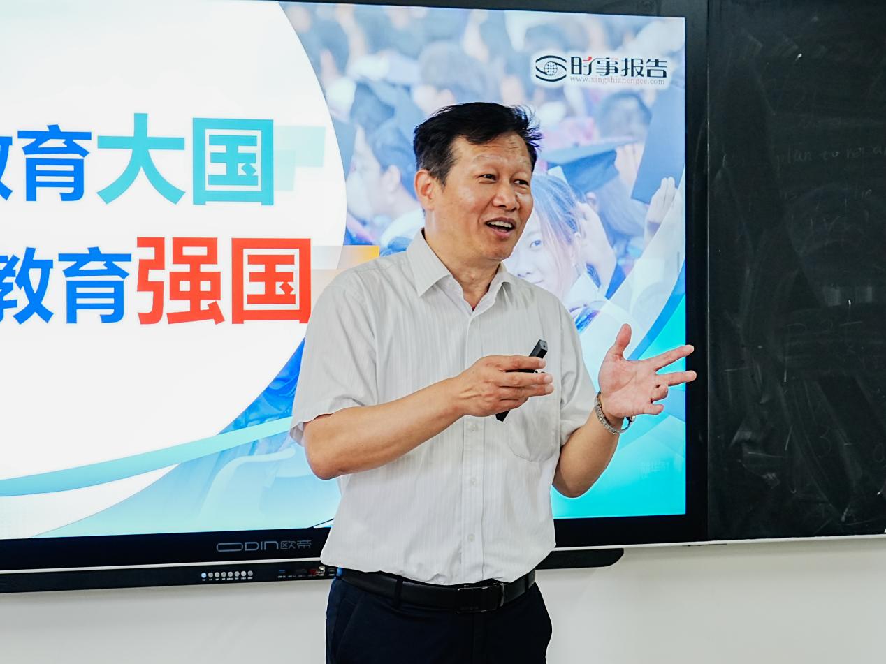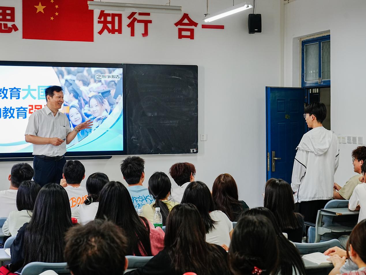 首先,吴中通过课堂互动提问的方式,抛出“在你们过往的教育历程里,哪一段教育过程令你印象深刻?其深刻原因是什么?”这一问题,以此作为切入点,迅速引发了同学们的积极思考与热烈讨论。吴中认真倾听,在充分了解同学们的想法后,他巧妙地将这些个人经历与教育强国建设的大背景相结合,深入浅出地阐述了教育在国家发展中的关键作用。