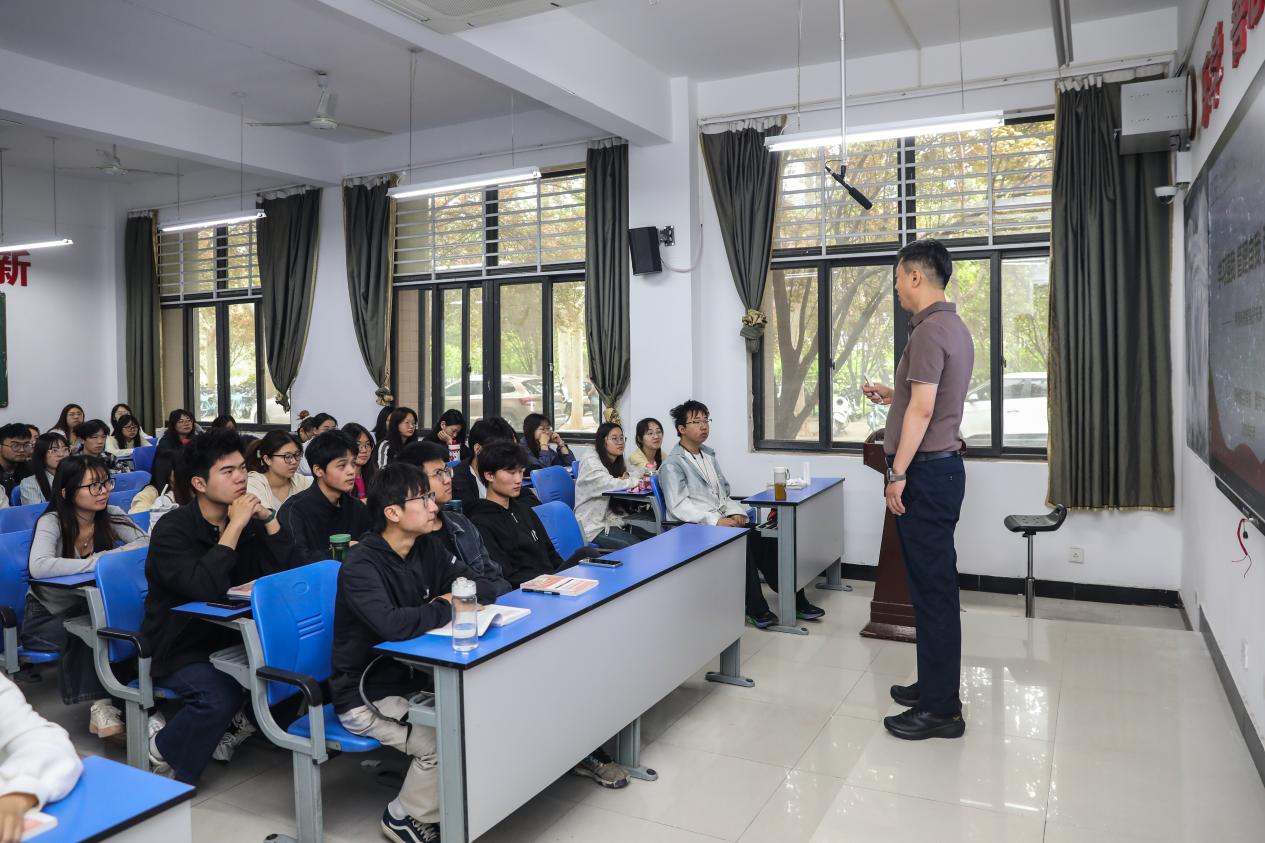 在讲授过程中,董学力援引官方数据,用客观数字支撑观点。通过展示近年来全国、河南省及我校普通高校毕业生数量变化统计图、用生动的数字和图表使学生直观了解当前就业形势。结合授课对象专业学情,与学生探讨艺术设计领域热门企业用工特点。最后,董学力倡议学生做好职业生涯规划,鼓励学生结合兴趣爱好发掘自身潜力优势,设定明确目标。通过参与企业实训、招聘会等多途径积累实践经验。保持开放心态,持续学习和成长。